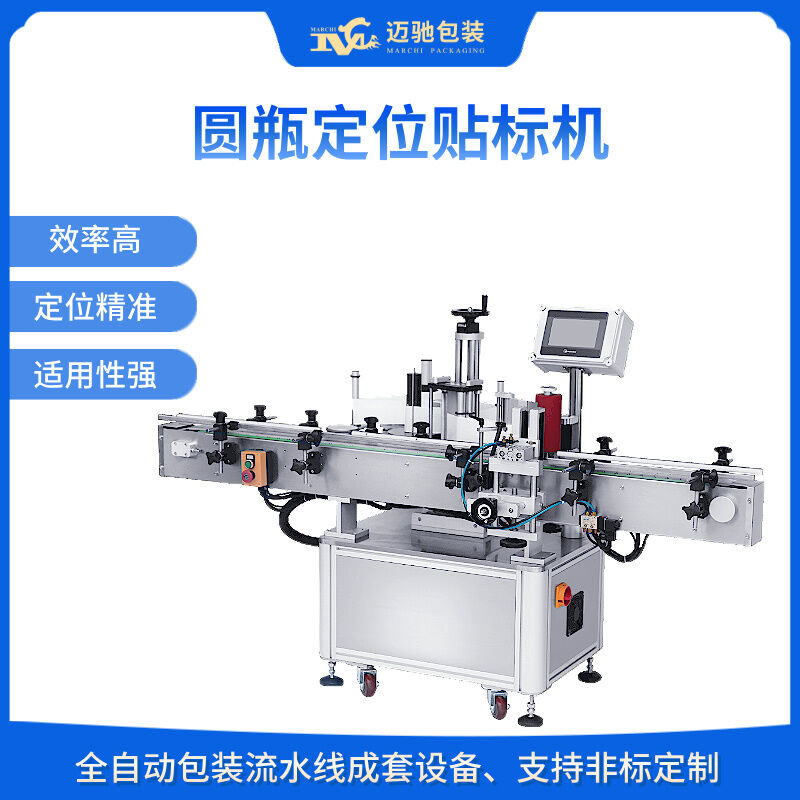 迈驰是一家专业生产圆瓶定位贴标机的厂家,适用于圆形物体(瓶、罐)或带有一定锥度的圆形物体的自动贴标。欢迎大家来工厂实地考察,案例多,经验广,26年灌装生产线行业经验,助力生产企业降本增效、提高产能。
