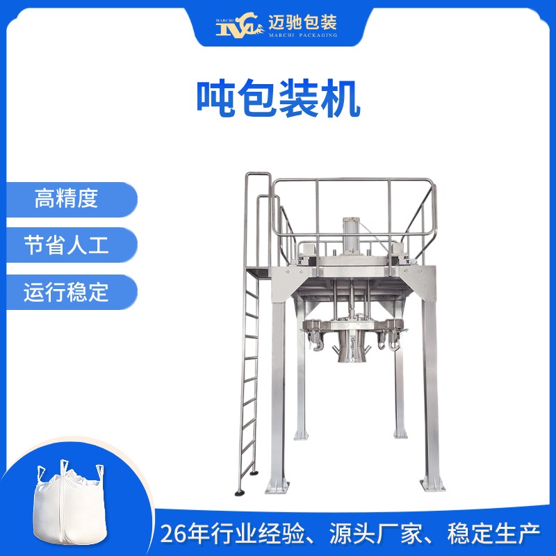 迈驰是一家专业生产粉体、颗粒吨袋包装机自动化生产线厂家,可根据客户不同粉料特性定制一对一方案,吨袋打包机,吨袋包装秤,吨袋机等设备。26年包装行业经验,助力生产企业稳定生产,提高产能。