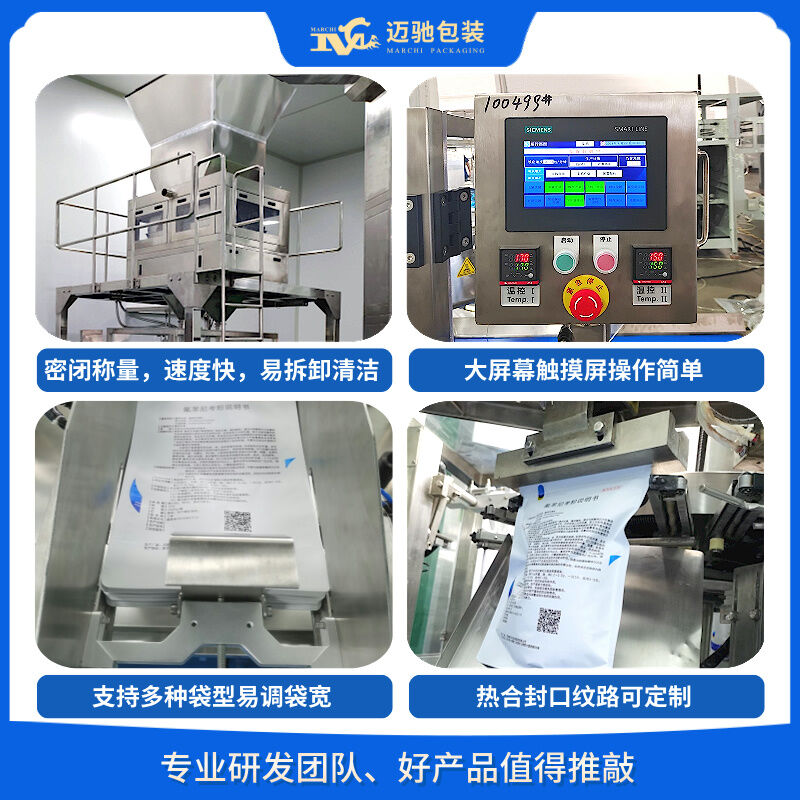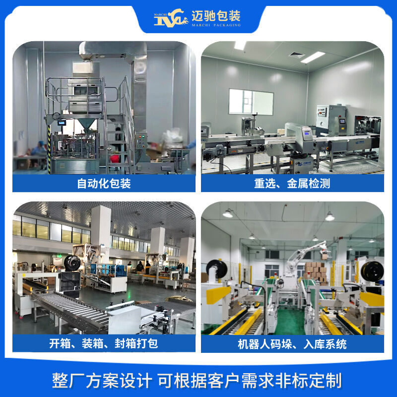 迈驰是一家专业生产颗粒全自动包装机、给袋式自动包装机、全自动包装机械设备生产厂家,可根据客户不同物料特性定制一对一方案,为您解决包装精度的问题。一键调节袋宽,换产更方便。整厂方案设计,支持非标定制。26年包装行业经验,助力生产企业稳定生产,提高产能。