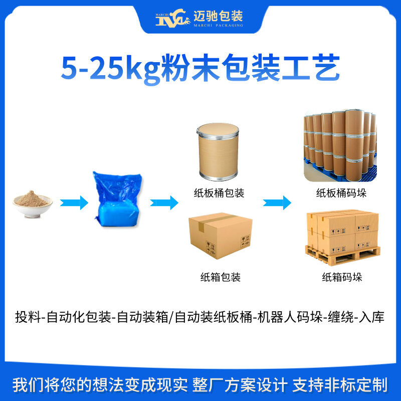 迈驰,是一家专业生产全自动5-25kg粉末包装流水线的生产厂家,无扬尘、高精度,可根据物料不同特性定制包装流水线设备,一对一定制化服务,26年包装行业经验助力生产企业将本增效,提高产能。